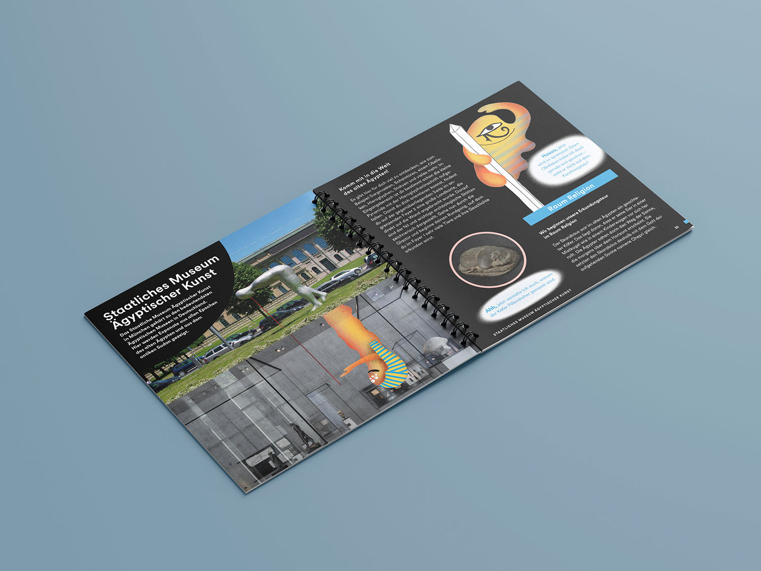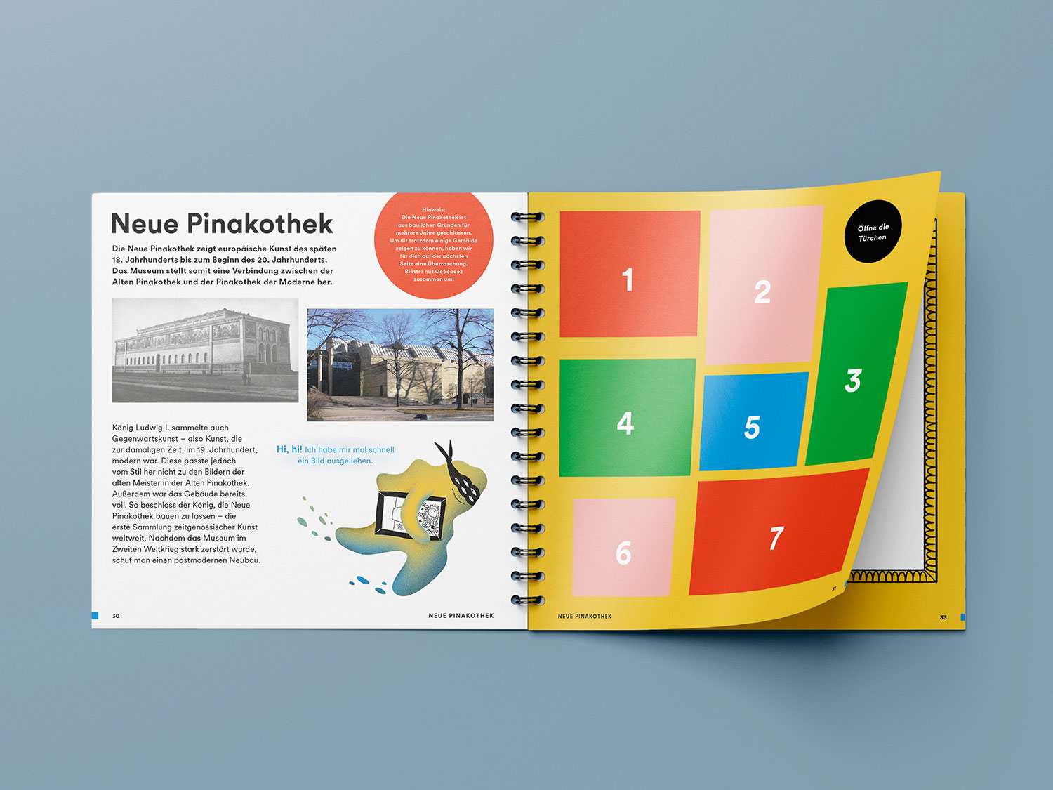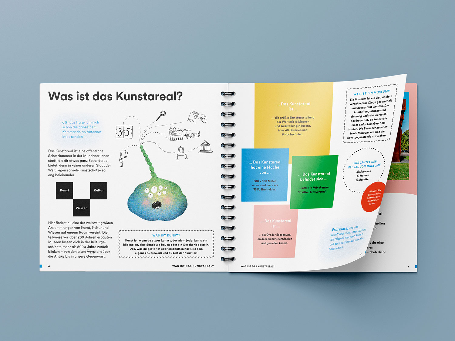 Illustration and design for an interactive children's book. The alien Oooooooz, a curious blob of colour, has landed with his UFO in front of the Pinakothek der Moderne in Munich. He begins to explore the entire art area. Readers will encounter the Bavarian Urelefant, mysterious animals from ancient Egypt, famous artists from all eras, historic buildings and modern design. They are introduced to the experience of art, culture, knowledge in a playful way. All the museums in the Kunstareal are presented in a child-friendly and entertaining way with selected exhibits. Numerous pictures and illustrations, informative fact sheets for young and old, stickers, calendars, tricky tasks and fun puzzles invite children to puzzle and join in.
