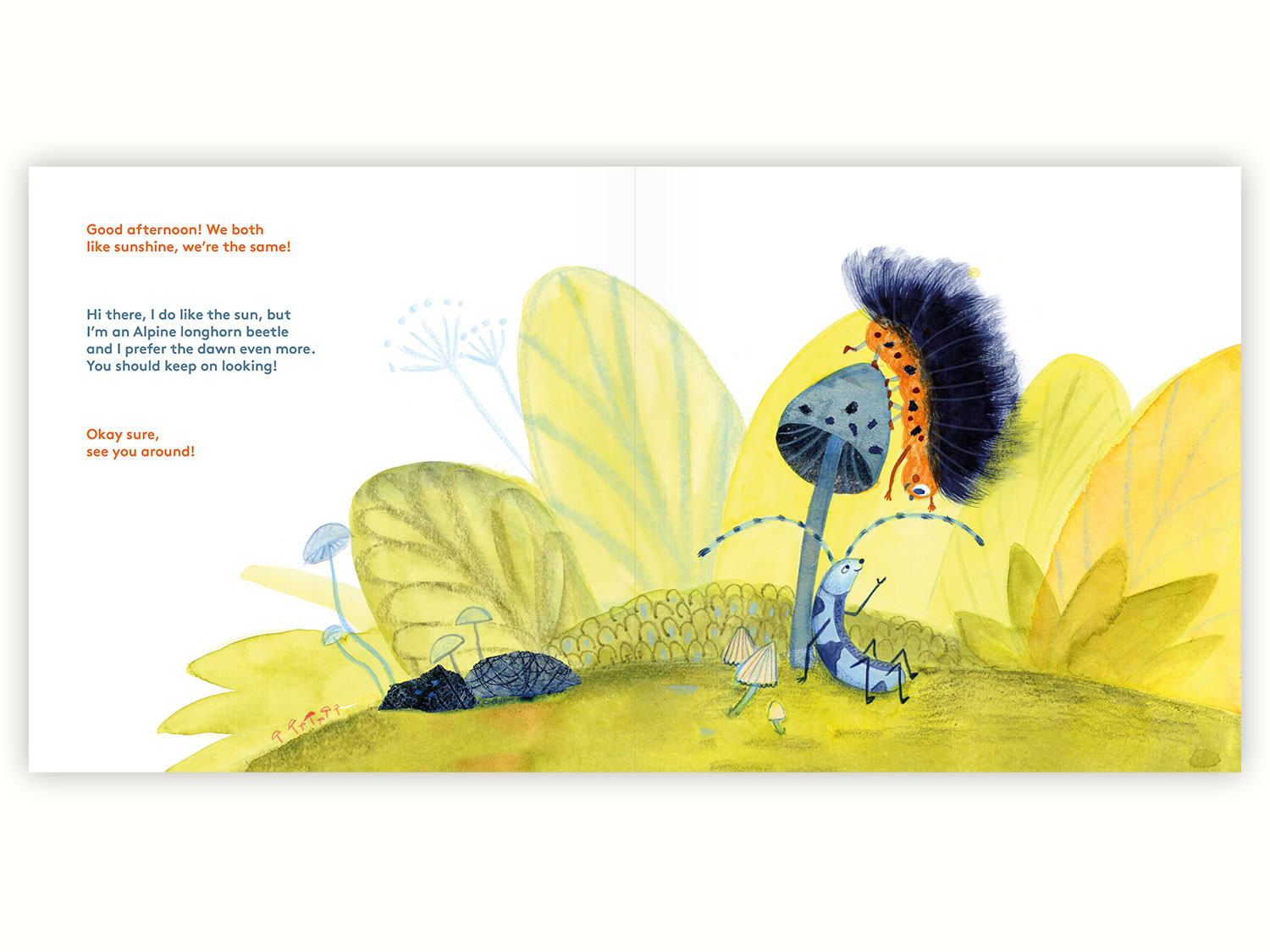 »Just Like You« is a picture book developed as part of my final MA project in Children's Book Illustration at Cambridge School of Art. Inspired by a summer mushroom hunting trip, I developed a story exploring forest floor scenes with insects.
