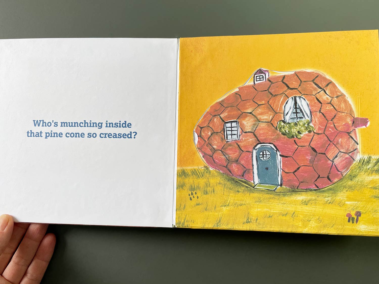 Who's living in the mushroom house?Three little bugs and one tiny mouse!Join an adventure discovering little creatures hiding in the forest. Can you also count them?